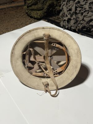 The Czechoslovak Vz. 53 (M53) steel helmet is a classic design based on the Vz. 52 which was simply just a USSR-supplied Shh-40 helmet refitted with a leather liner. The Vz. 53 was issued to troops in the early 1950s and even saw combat during the Warsaw Pact Invasion in 1968, until the 1980s when they replaced the leather straps with a four-point nylon strap and chin guard resulting in the Vz. 53/80.